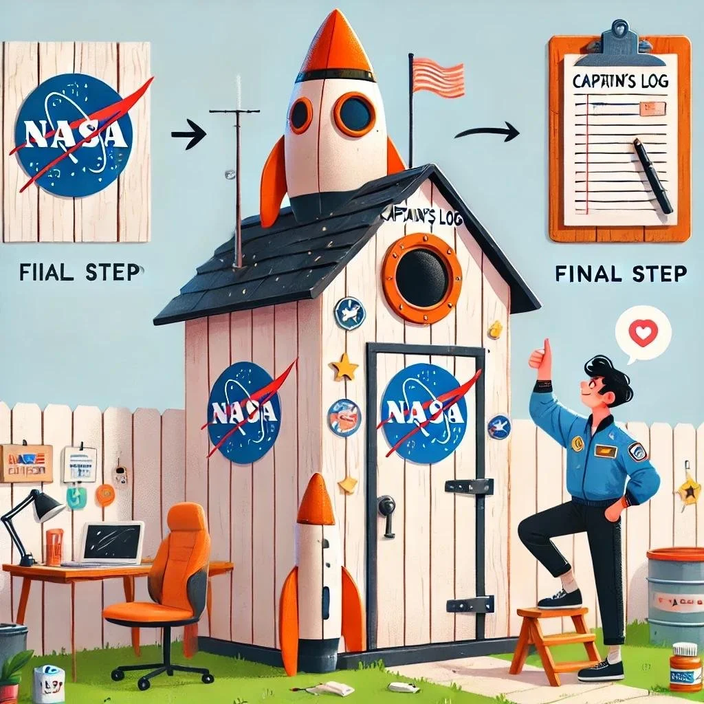 Step back and admire your work. Add any extra details like a faux antenna, a NASA-inspired logo, or even a “Captain’s Log” clipboard on the door. This is your shed-rocket, so make it unique!